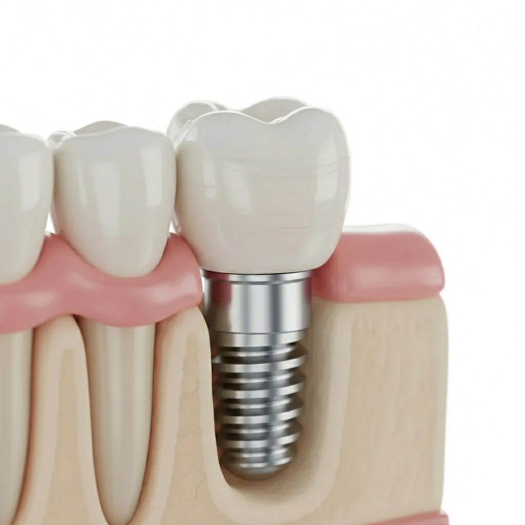 Особого ухода требуют супраструктура (часть, выступающая над десной, на которую фиксируется коронка или мостовидный протез) имплантата и поверхность протеза, прилегающая к десне.